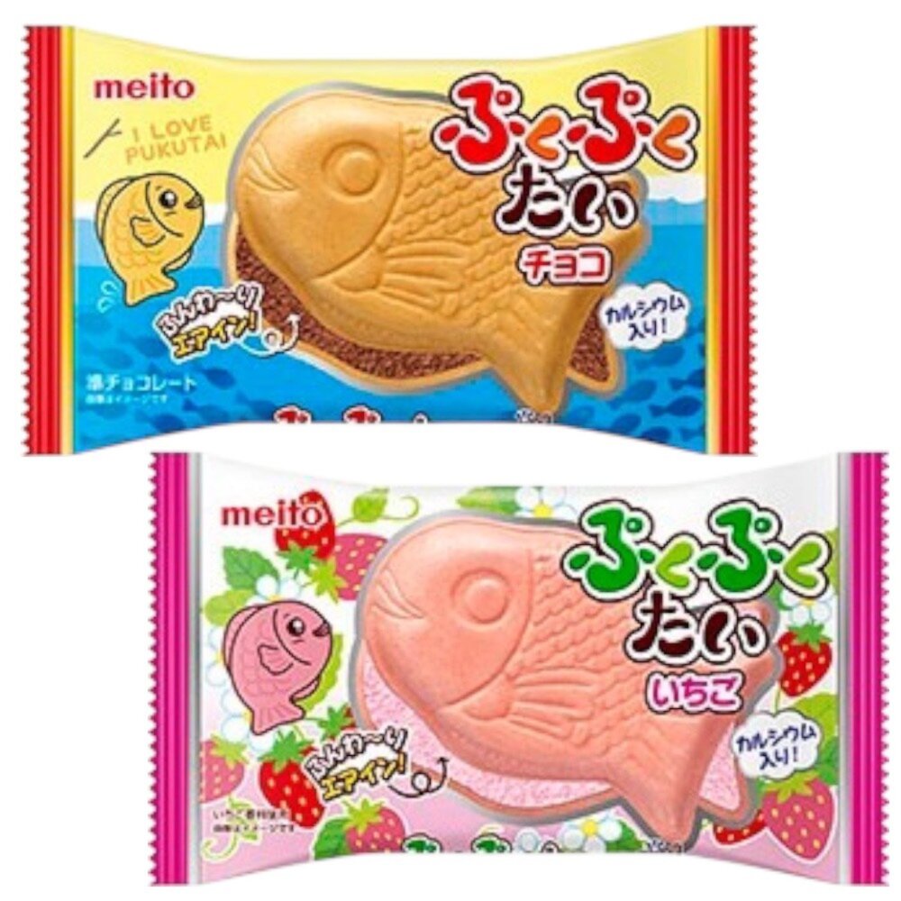 日本名糖Meito 鯛魚燒 巧克力風味 草莓風味 威化餅 魚型餅乾 鯛魚燒餅乾