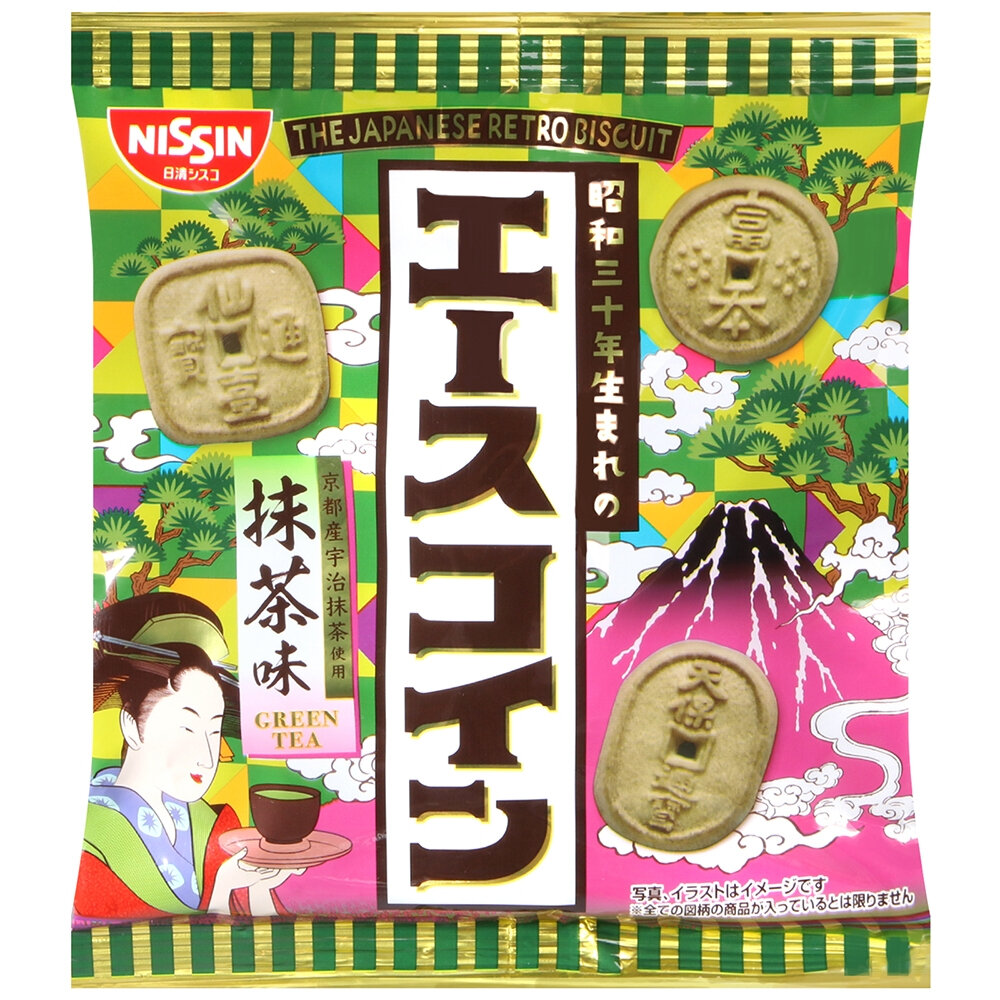 日本 日清 NISSIN 古錢造型抹茶餅乾 抹茶餅乾 造型餅乾