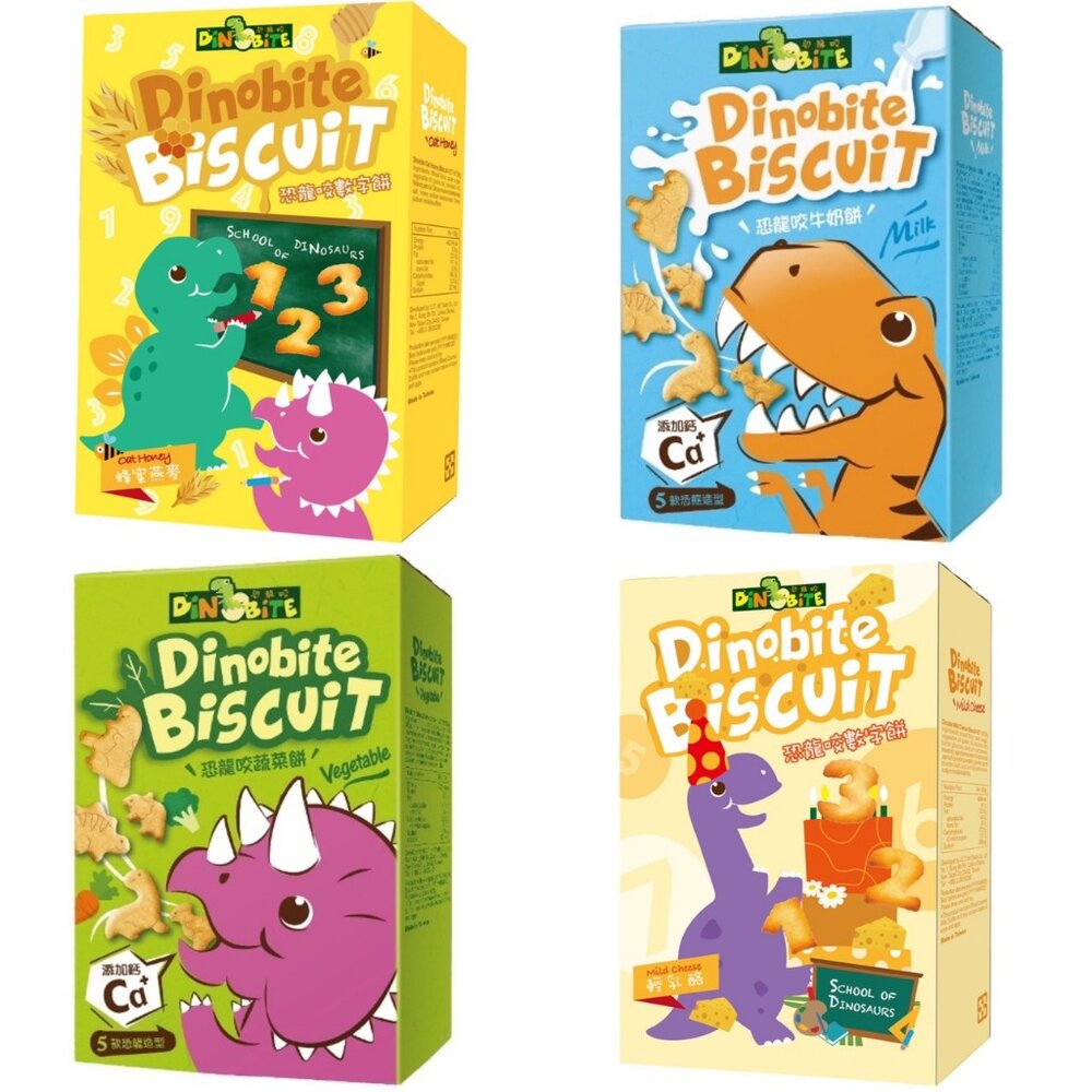 台灣 Dinobite 恐龍咬 蔬菜餅 恐龍造型 數字造型 餅乾 牛奶餅乾 蜂蜜燕麥 數字餅 輕乳酪