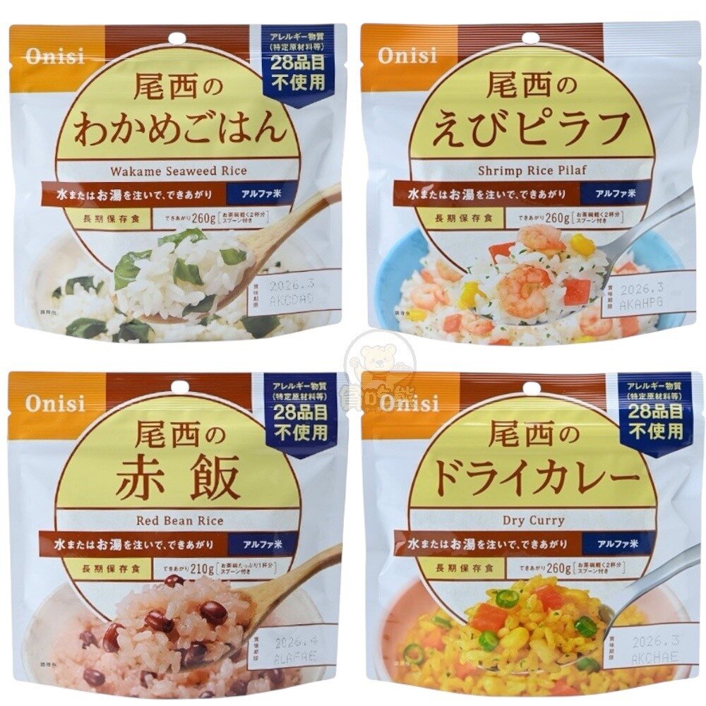 日本 Onisi 尾西 乾燥飯 泡飯 沖泡飯 沖泡即食乾燥飯 咖哩風味 蝦仁風味 紅豆風味 海帶芽風味 露營